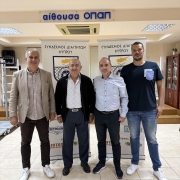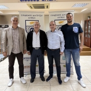 κ. Χρίστου Σπανού με τον ομόλογο του στο δ.σ της ΣΤΟΚ κ. Μαρίνο Τιμόθεου, καθώς και η γνωριμία του νέου δ.σ τού Συνδέσμου Διαιτητών Κύπρου με τους αντιπροσώπους των Ομοσπονδιών και του δ.σ της ΣΤΟΚ.