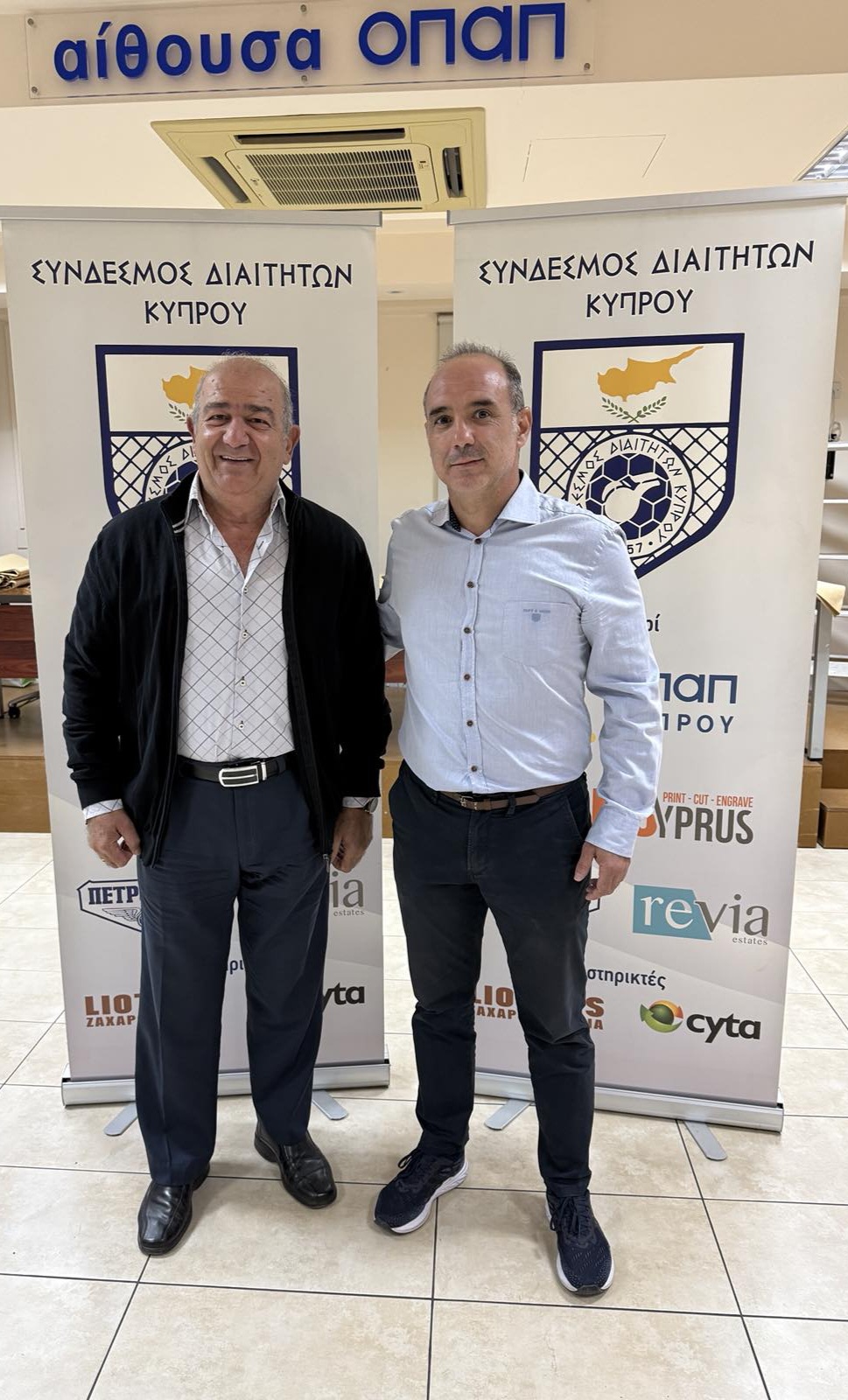 κ. Χρίστου Σπανού με τον ομόλογο του στο δ.σ της ΣΤΟΚ κ. Μαρίνο Τιμόθεου, καθώς και η γνωριμία του νέου δ.σ τού Συνδέσμου Διαιτητών Κύπρου με τους αντιπροσώπους των Ομοσπονδιών και του δ.σ της ΣΤΟΚ.